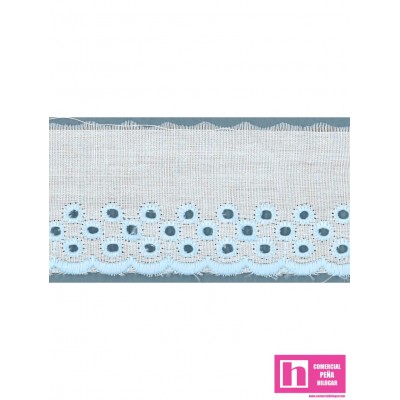 11786-3 TIRA BORDADA ALFONSINA 35 MM. POL.60%-ALGODON 40% BLANCO/CELESTE Venta en piezas de 13.80 M