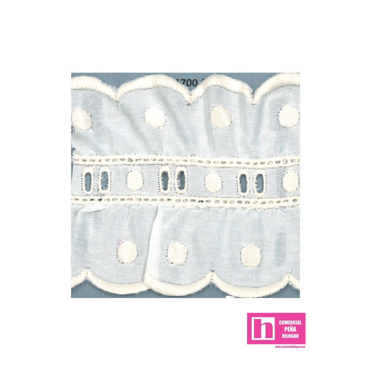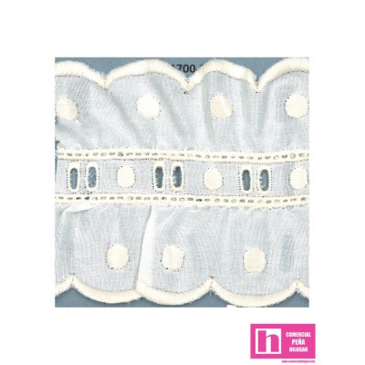 02/11700-2 GALON BORDADO FRUNCIDO LIONETTA 75 MM. POL.60%-ALGODON 40% BEIG Venta en piezas de 11.00 M