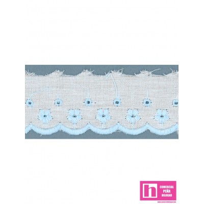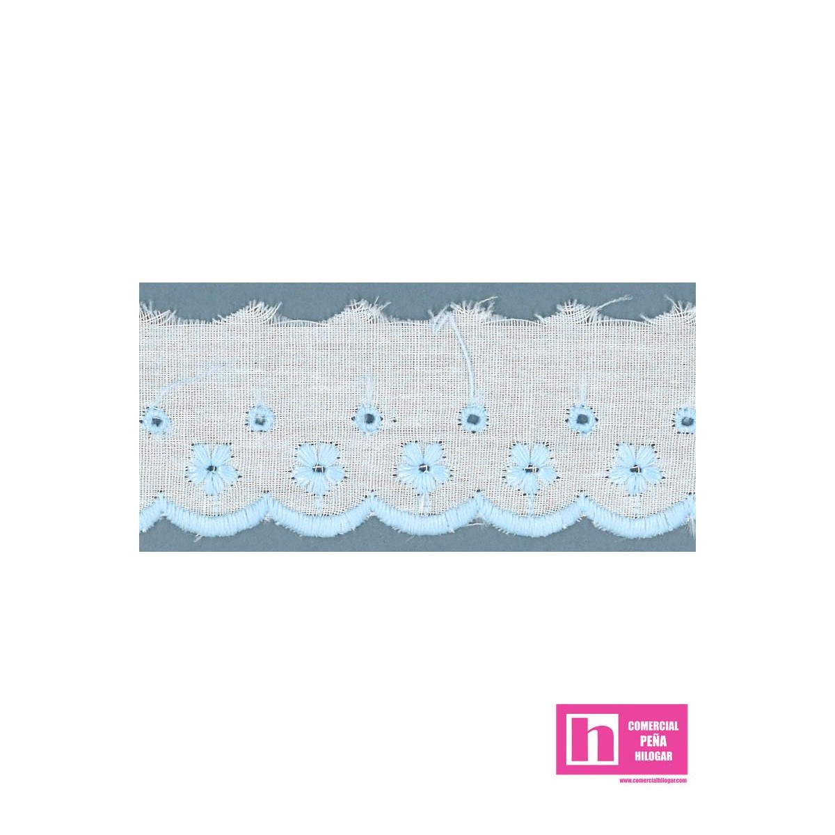 11804-3 TIRA BORDADA ANAROSSA 25 MM. POL.60%-ALGODON 40% BLANCO/CELESTE Venta en piezas de 13.80 M