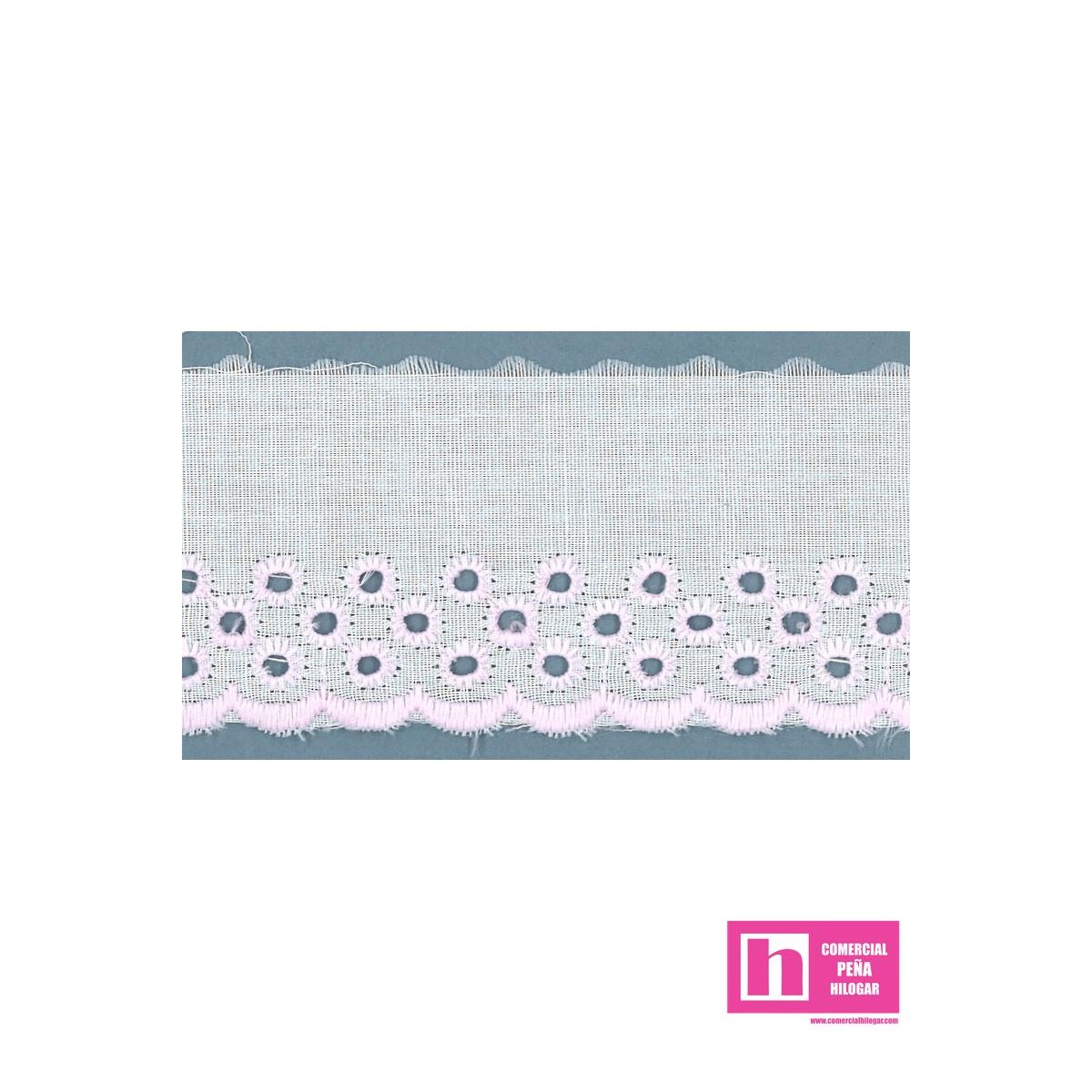 11786-7 TIRA BORDADA ALFONSINA 35 MM. POL.60%-ALGODON 40% BLANCO/ROSA Venta en piezas de 13.80 M