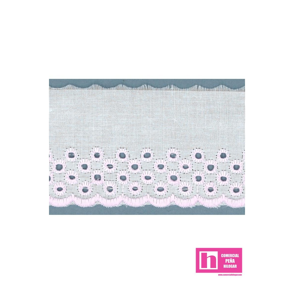 11785-7 TIRA BORDADA ALFONSINA 50 MM. POL.60%-ALGODON 40% BLANCO/ROSA Venta en piezas de 13.80 M