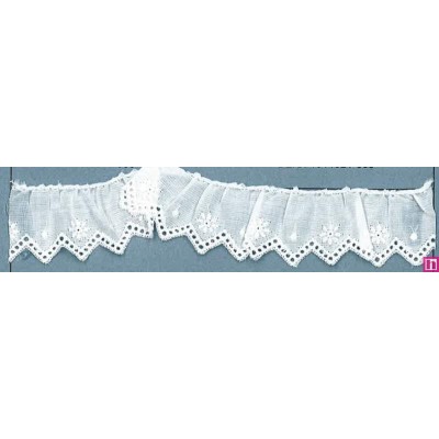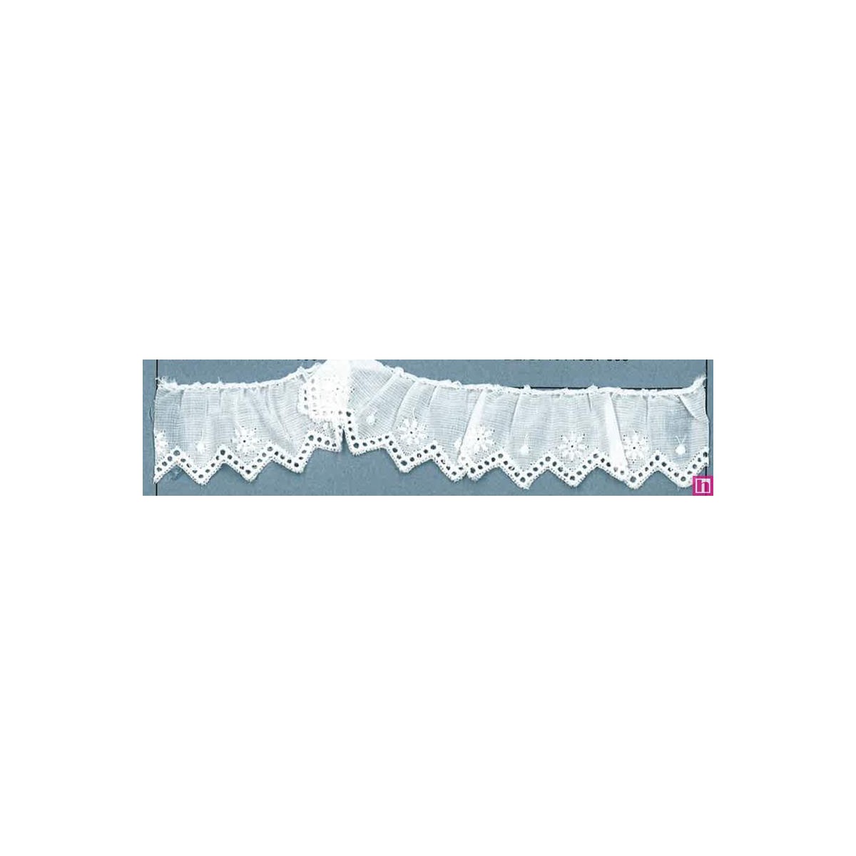 1611021-000 BORDADO FRUNCIDO BATISTA IKIA POLIESTER 60%-ALGODON 40% BLANCO Venta en piezas de 11.00 M