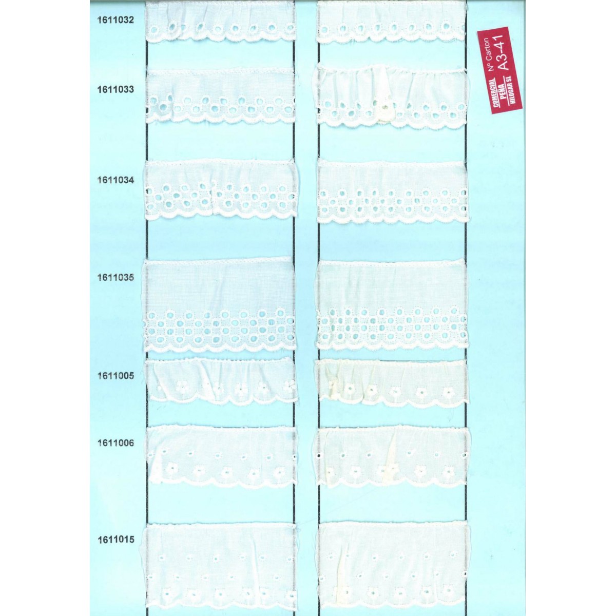 1611006-003 BORDADO FRUNCIDO BATISTA TEA POLIESTER 60%-ALGODON 40% BEIG Venta en piezas de 11.00 M