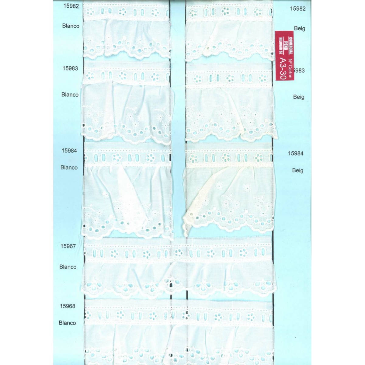 15984-003 BORDADO FRUNCIDO BATISTA AMELIE POLIESTER 60%-ALGODON 40% BEIG Venta en piezas de 11.00 M