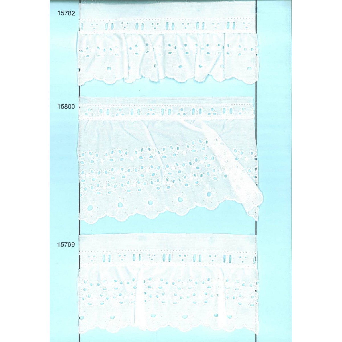 15799-000 BORDADO FRUNCIDO BATISTA ADELA POLIESTER 60%-ALGODON 40% BLANCO Venta en piezas de 11.00 M