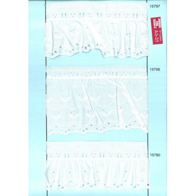 15780-000 BORDADO FRUNCIDO BATISTA DALILA POLIESTER 60%-ALGODON 40% BLANCO Venta en piezas de 11.00 M