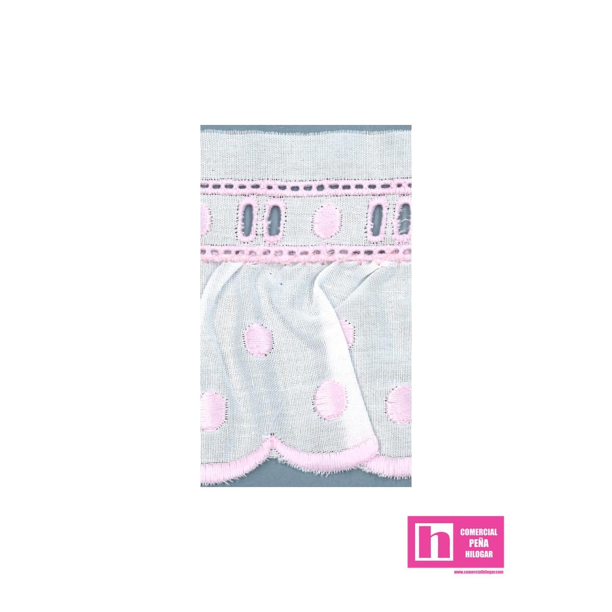 11699/02-7 TIRA BORDADA FRUNCIDA LIONETTA 60 MM. POL.60%-ALGODON 40% BLANCO/ROSA Venta en piezas de 11.00 M