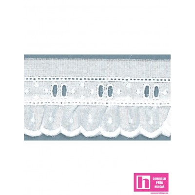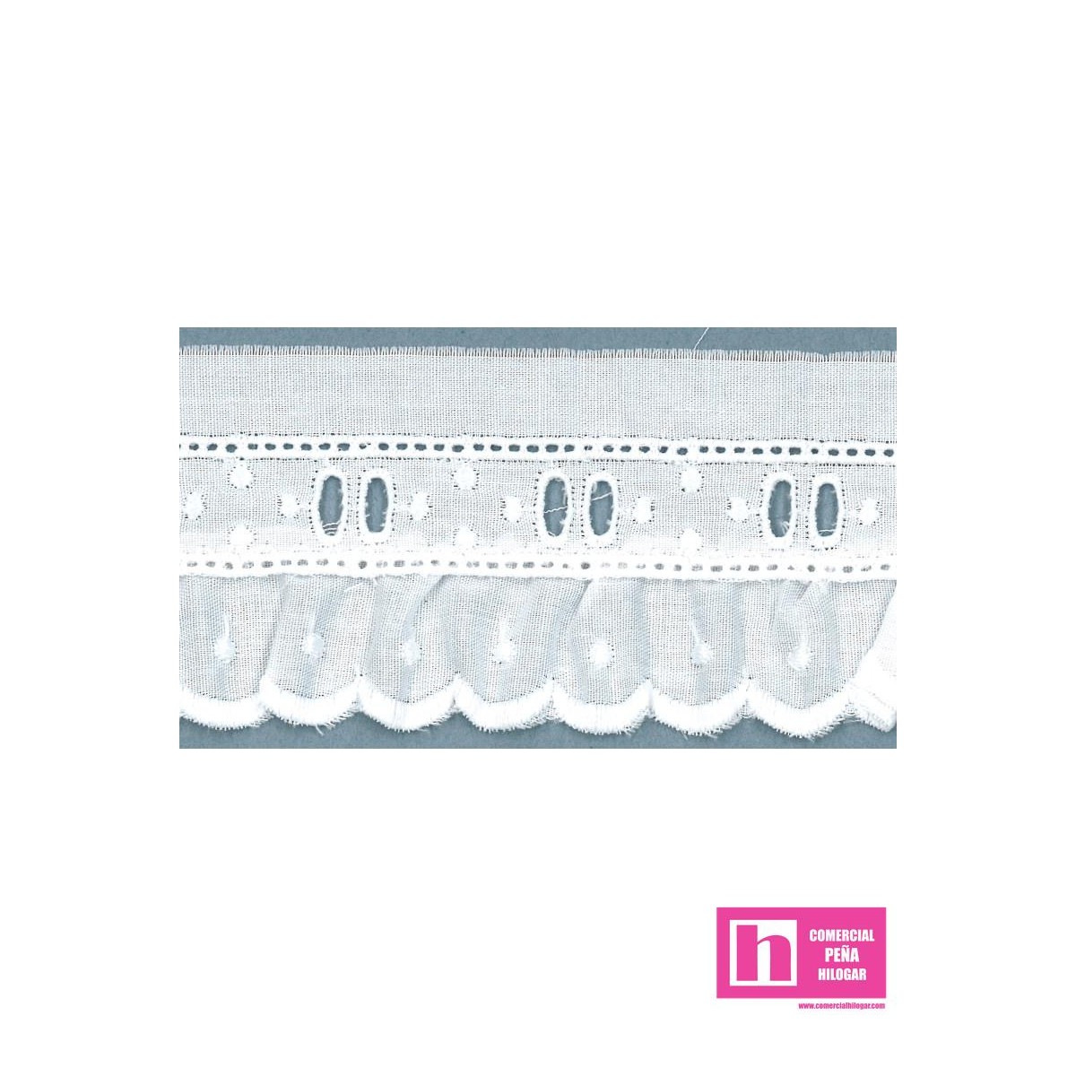 11695/97-1 TIRA BORDADA FRUNCIDA JACOBELLA 35 MM. POL.60%-ALGODON 40% BLANCO Venta en piezas de 11.00 M