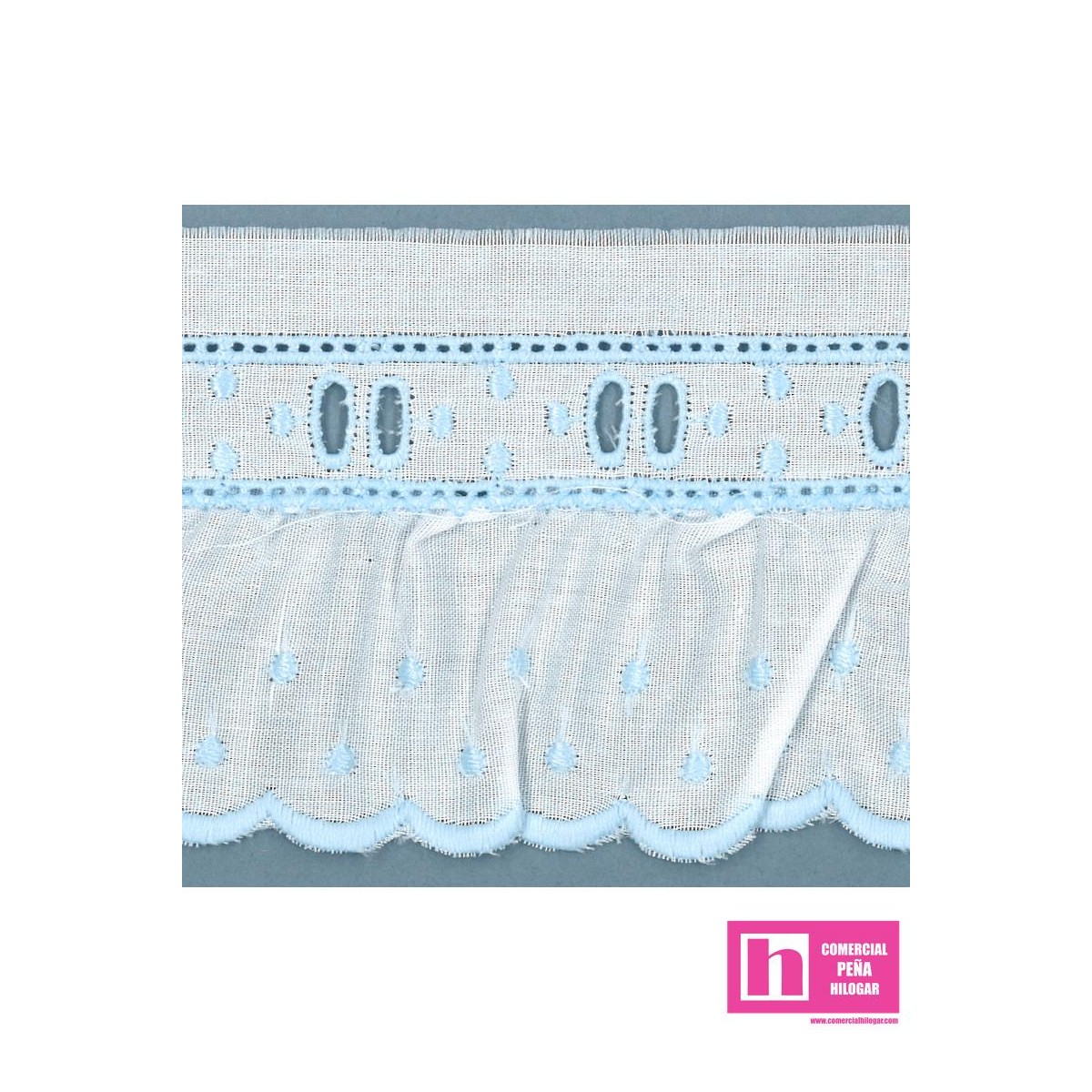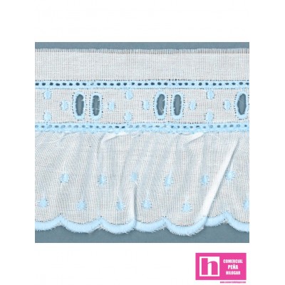 11694/97-3 TIRA BORDADA FRUNCIDA JACOBELLA 50 MM. POL.60%-ALGODON 40% BLANCO/CELESTE Venta en piezas de 11.00 M