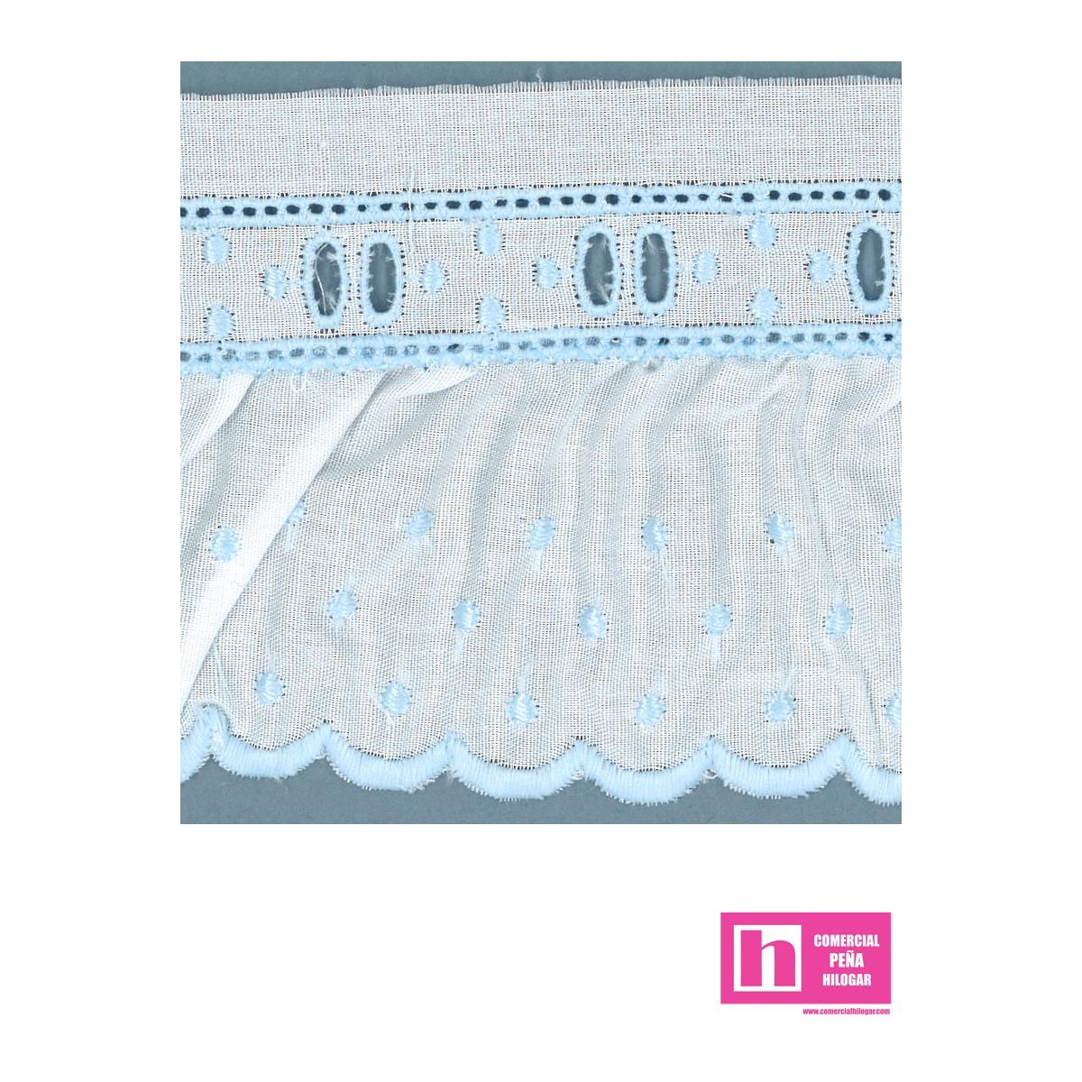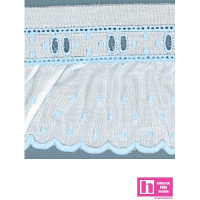 11693/97-3 TIRA BORDADA FRUNCIDA JACOBELLA 60 MM. POL.60%-ALGODON 40% BLANCO/CELESTE Venta en piezas de 11.00 M
