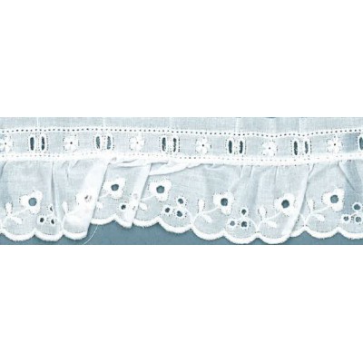 11078/04-000 BORDADO FRUNCIDO BATISTA LORY POLIESTER 60%-ALGODON 40% BLANCO Venta en piezas de 11.00 M