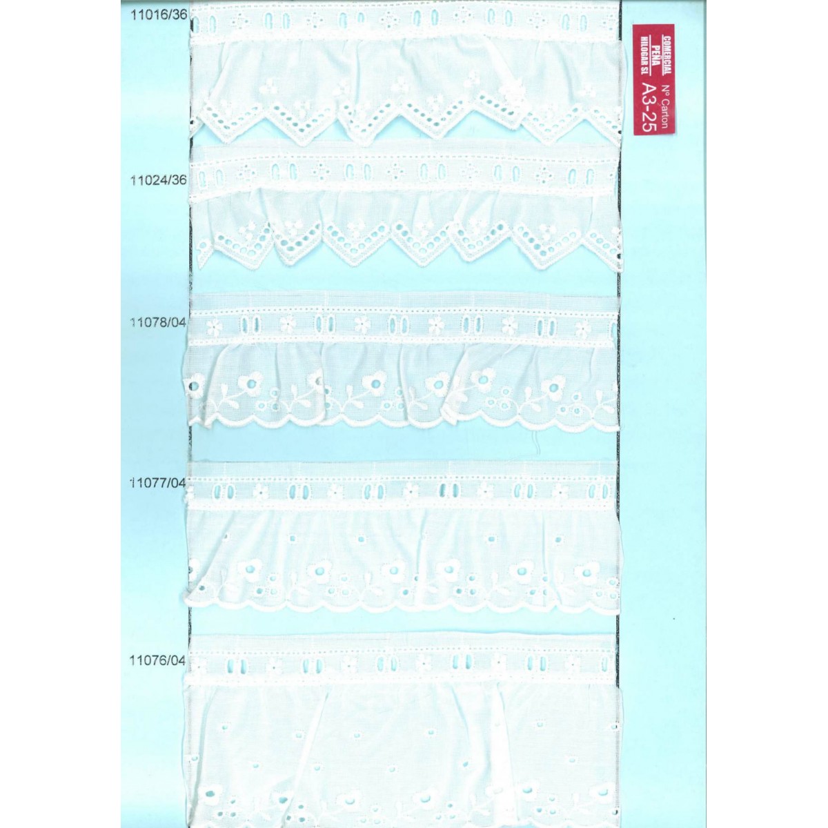 11077/04-000 BORDADO FRUNCIDO BATISTA LORY POLIESTER 60%-ALGODON 40% BLANCO Venta en piezas de 11.00 M