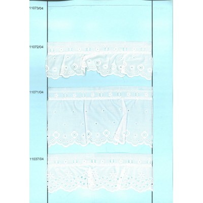 11073/04-000 BORDADO FRUNCIDO BATISTA LETY POLIESTER 60%-ALGODON 40% BLANCO Venta en piezas de 11.00 M