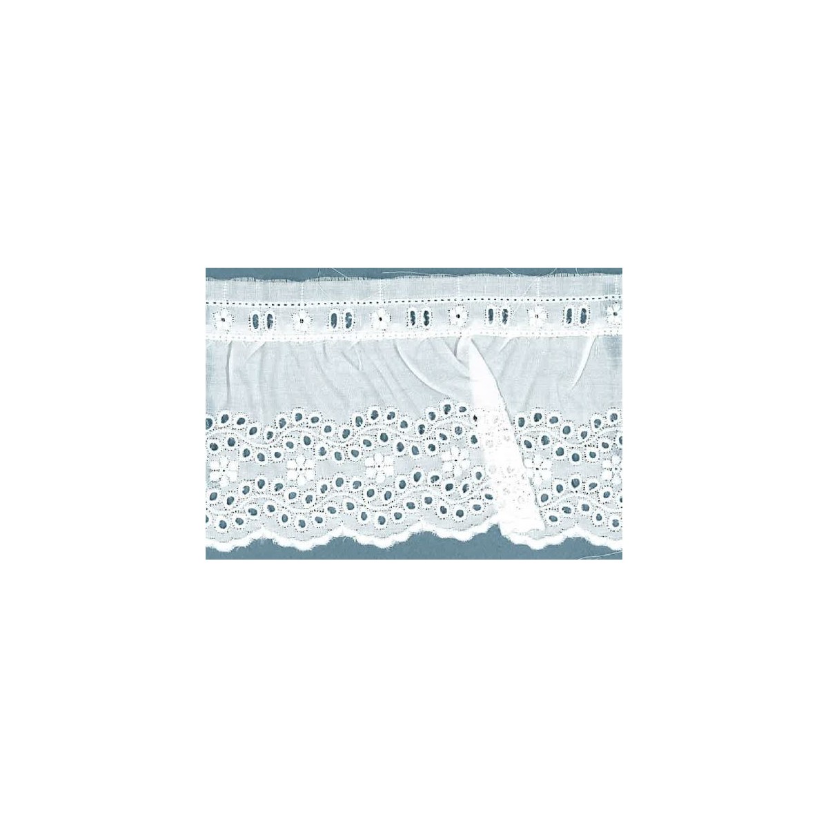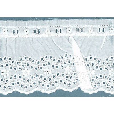 11038/04-000 BORDADO FRUNCIDO BATISTA TELIMA POLIESTER 60%-ALGODON 40% BLANCO Venta en piezas de 11.00 M