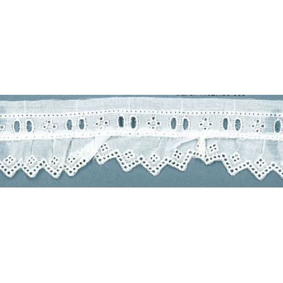11027/36-000 BORDADO FRUNCIDO BATISTA RAMAL POLIESTER 60%-ALGODON 40% BLANCO Venta en piezas de 11.00 M