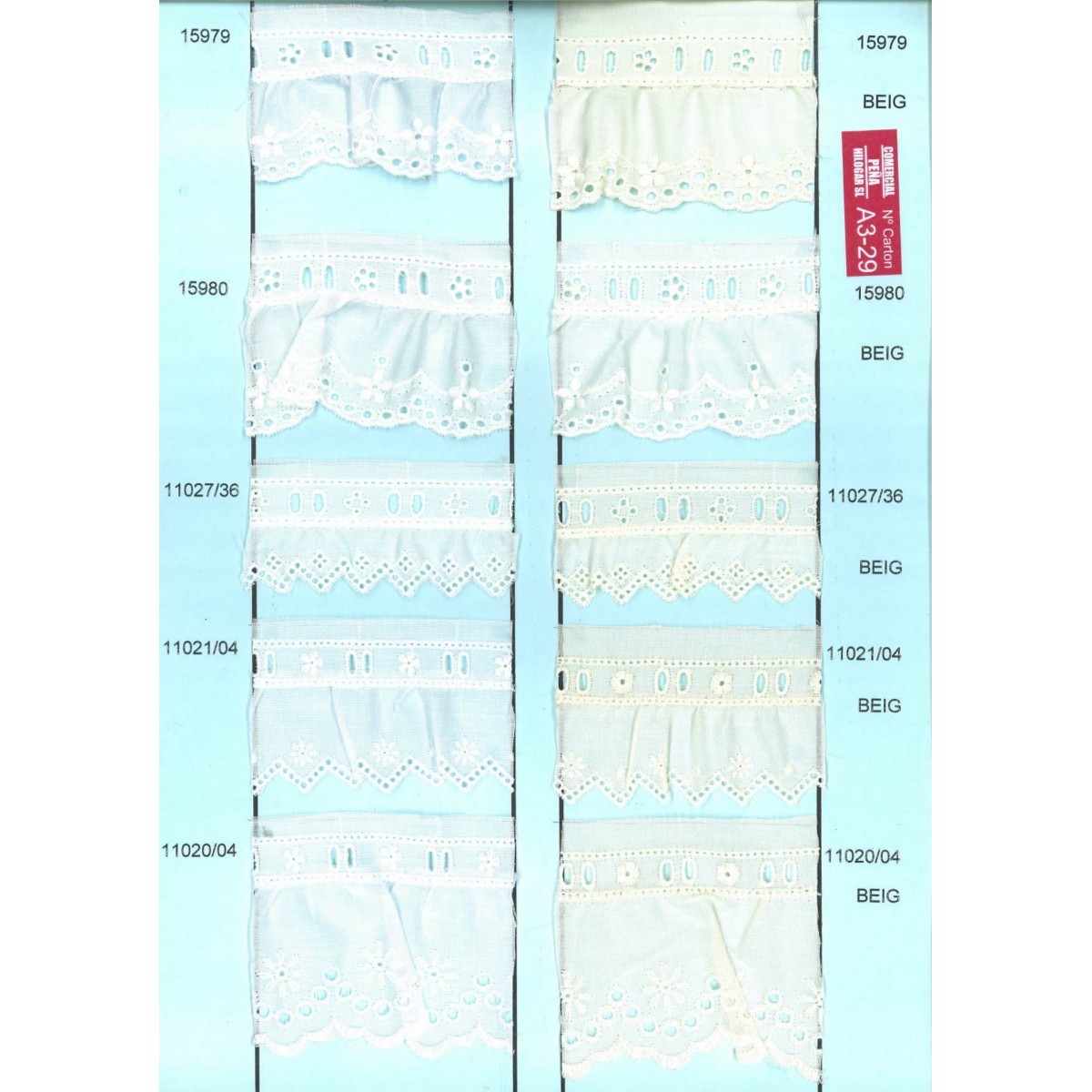 11021/04-003 BORDADO FRUNCIDO BATISTA RAMAL POLIESTER 60%-ALGODON 40% BEIG Venta en piezas de 11.00 M