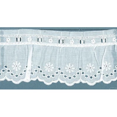 11020/04-000 BORDADO FRUNCIDO BATISTA RAMAL POLIESTER 60%-ALGODON 40% BLANCO Venta en piezas de 11.00 M