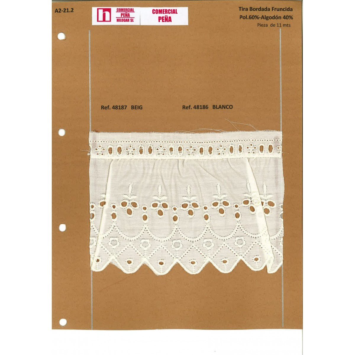 48187 TIRA FRUNCIDA BATISTA TANA POLIESTER 60%-ALGODON 40% BEIG-002 Venta en piezas de 11.00 M