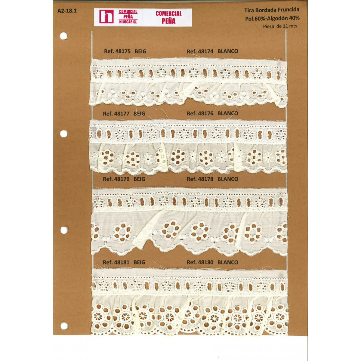Vista rápida 11698/02-2 TIRA BORDADA FRUNCIDA LIONETTA 80 MM. POL.60%-ALGODON 40% BEIG Venta en piezas de 11.00 M