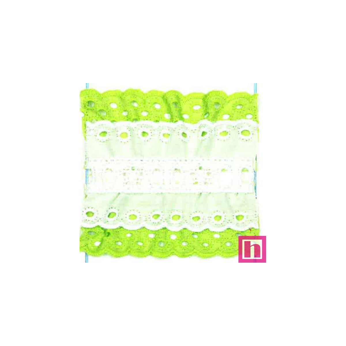 48144 BAYA GALON FRUNCIDO DOBLE BATISTA POLIESTER 60%-ALGODÓN 40% BLANCO/PISTACHO Venta en piezas de 11.00 M