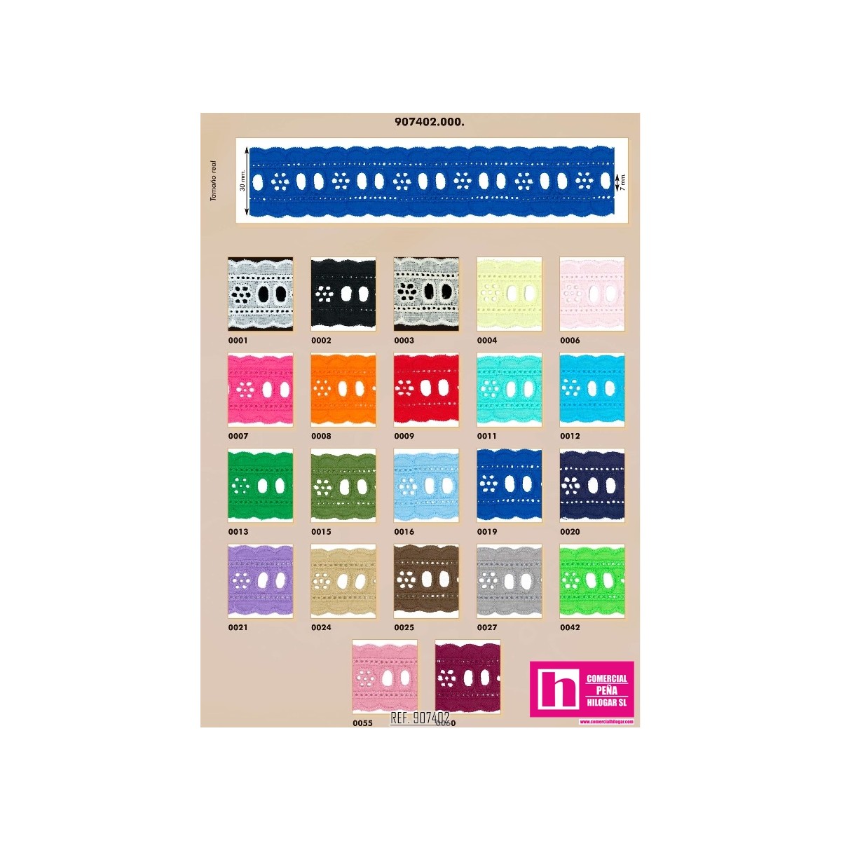 907402-0055 GALON PASACINTAS BORDADO 20 MM. ALGODON 100% MAQUILLAJE Venta en piezas de 27.40 M
