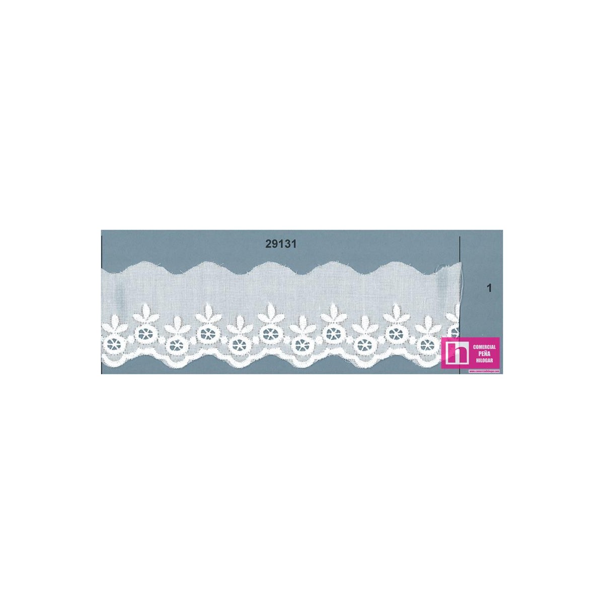 29131-1 TIRA BORDADA CAROLA 40 MM. POL.60%-ALGODON 40% BLANCO Venta en piezas de 13.80 M