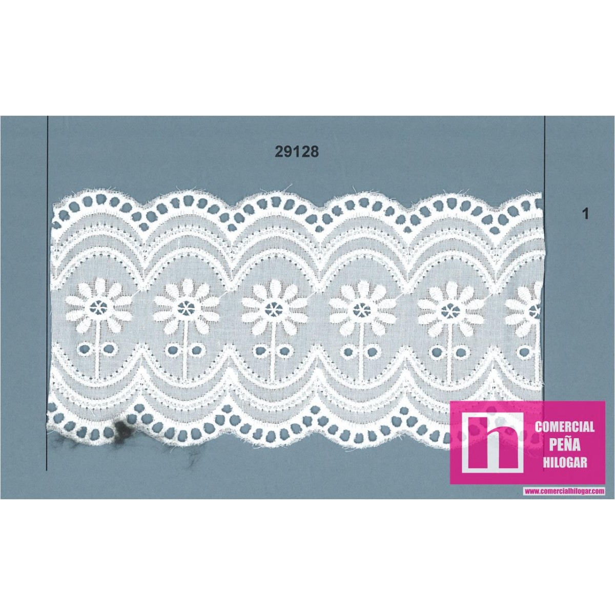 29128-1 GALON BORDADO CIRILO 80 MM. POL.60%-ALGODON 40% BLANCO Venta en piezas de 13.80 M