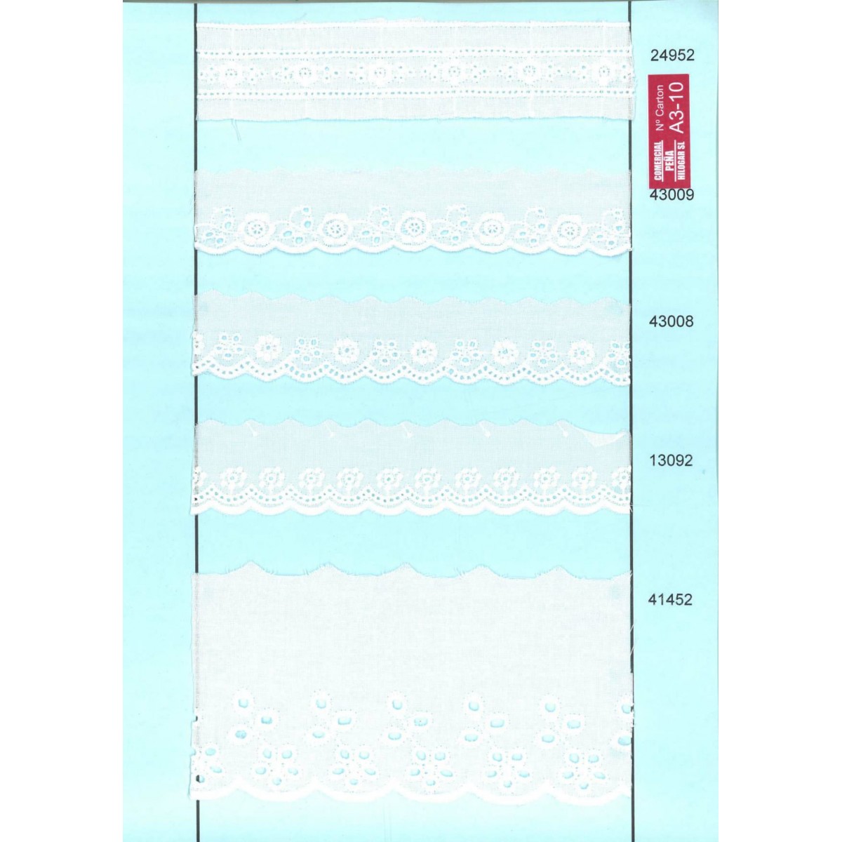 24952-000 BORDADO BATISTA MOLYART POLIESTER 60%-ALGODON 40% BLANCO Venta en piezas de 13.80 M