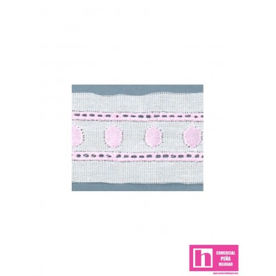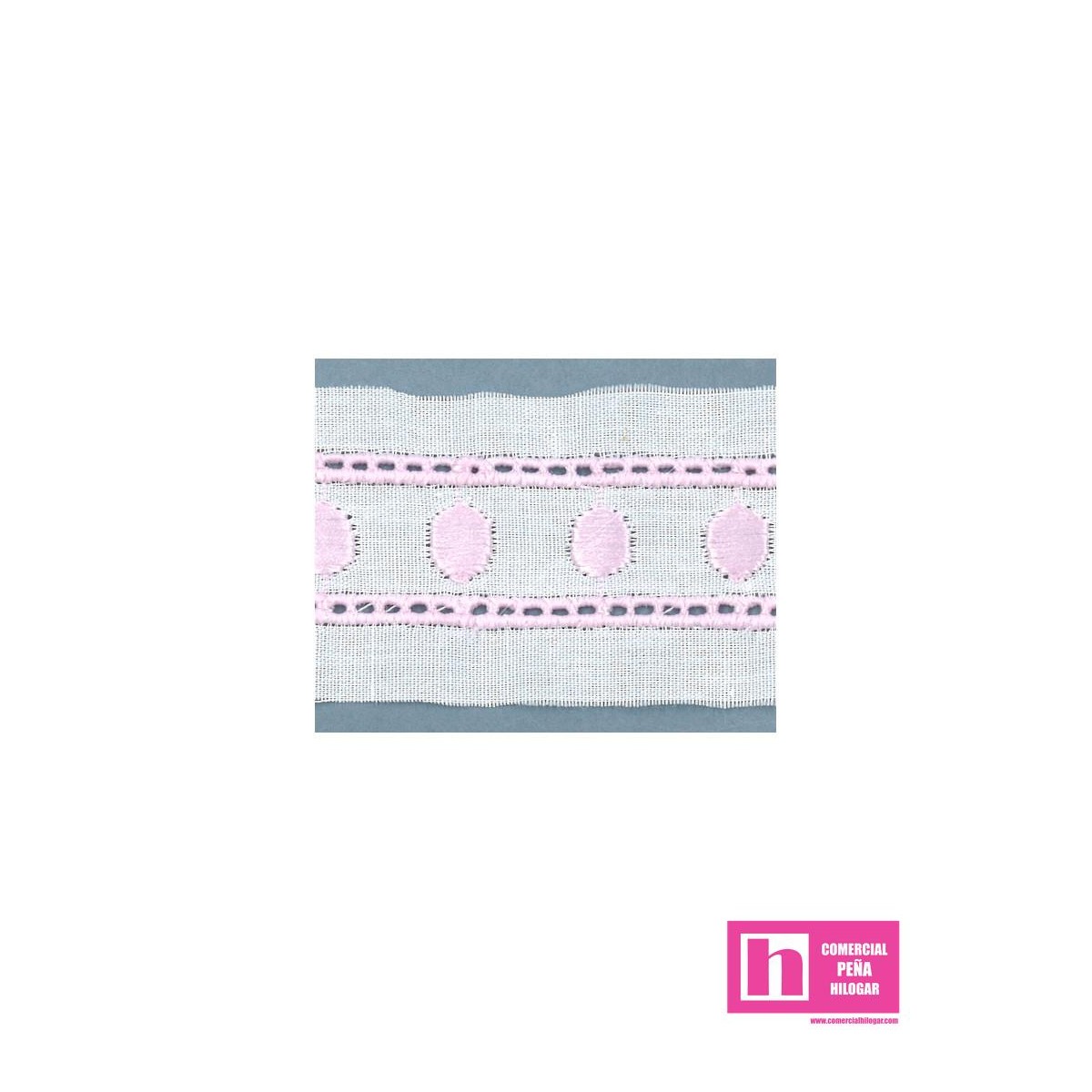 11701-7 ENTREDOS BORDADO ALESSIO 17 MM. POL.60%-ALGODON 40% BLANCO/ROSA Venta en piezas de 13.80 M