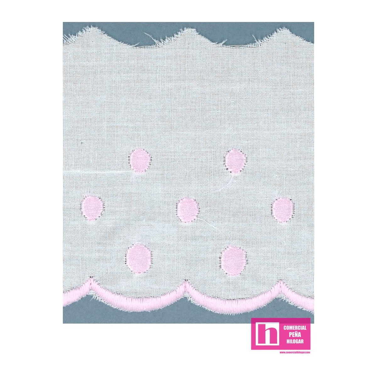 Vista rápida 11693-7 TIRA BORDADA PLUMETI ANAISA 50 MM. POL.60%-ALGODON 40% BLANCO/ROSA Venta en piezas de 13.80 M