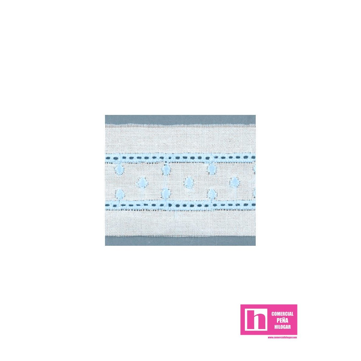 Vista rápida 11693-3 TIRA BORDADA PLUMETI ANAISA 50 MM. POL.60%-ALGODON 40% BLANCO/CELESTE Venta en piezas de 13.80 M