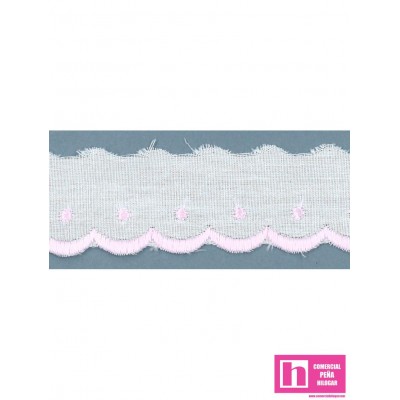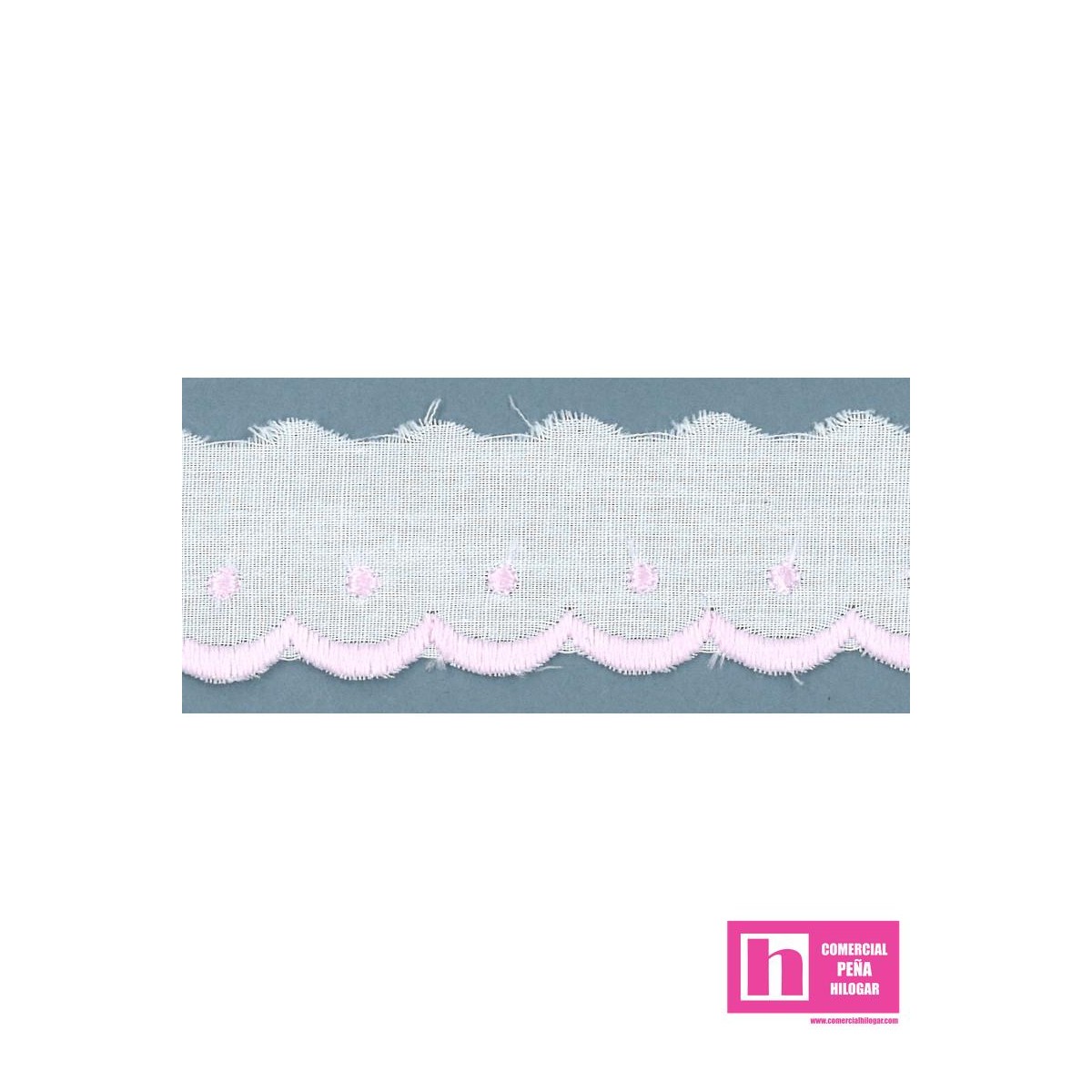 11695-7 TIRA BORDADA PLUMETI ANAISA 20 MM. POL.60%-ALGODON 40% BLANCO/ROSA Venta en piezas de 13.80 M