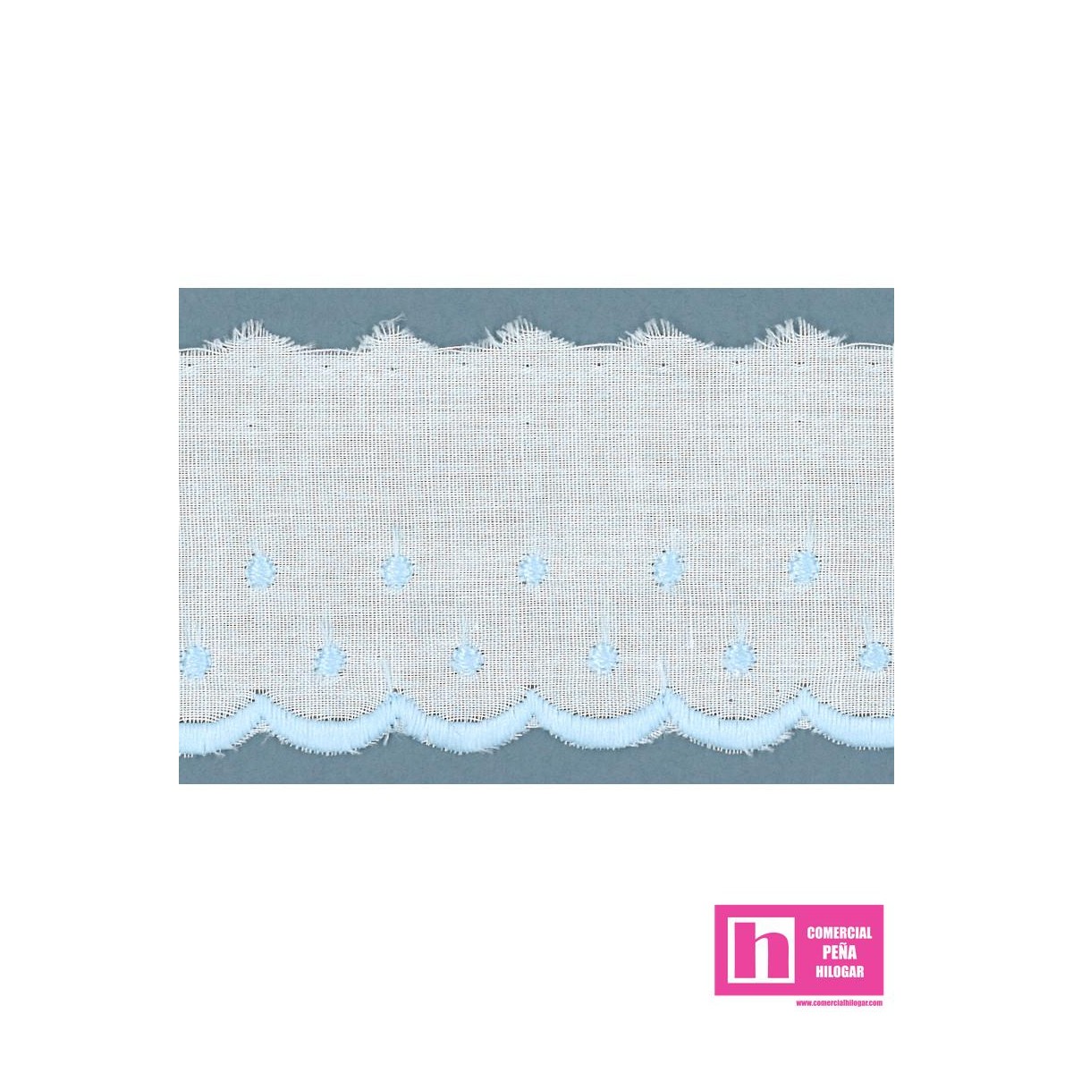 11694-3 TIRA BORDADA PLUMETI ANAISA 40 MM. POL.60%-ALGODON 40% BLANCO/CELESTE Venta en piezas de 13.80 M