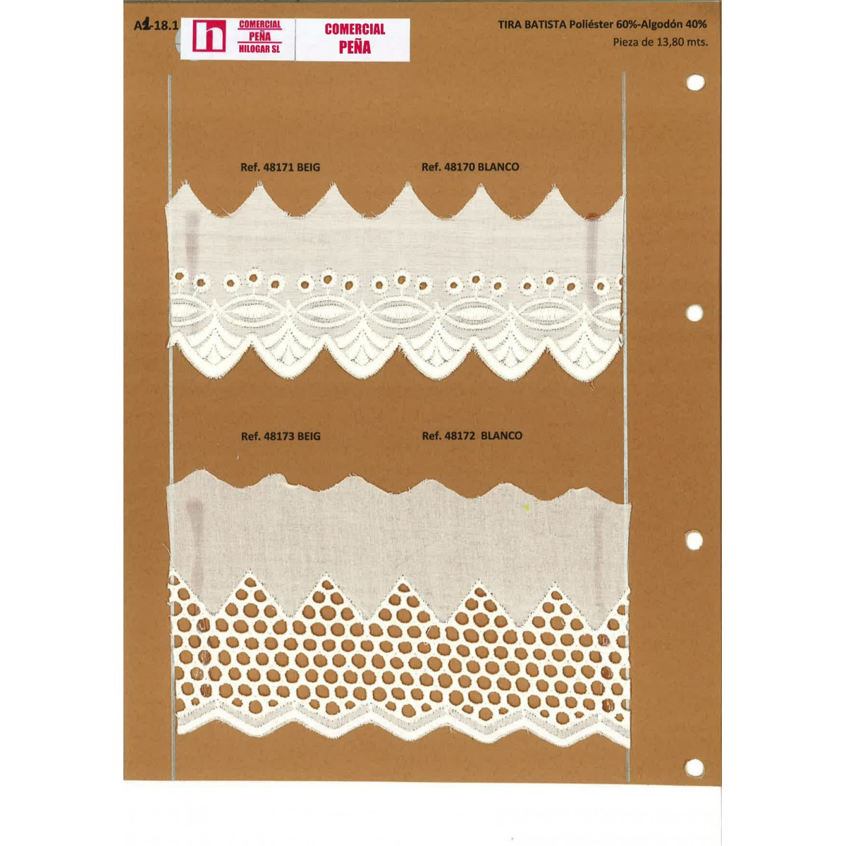 48171 TIRA BATISTA LANETTA POLIESTER 60%-ALGODON 40% BEIG-002 Venta en piezas de 13.80 M