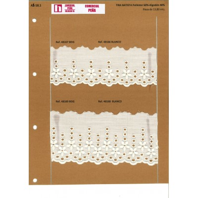 Vista rápida 48158 TIRA BATISTA XANDRA POLIESTER 60%-ALGODON 40% BLANCO-001 Venta en piezas de 13.80 M