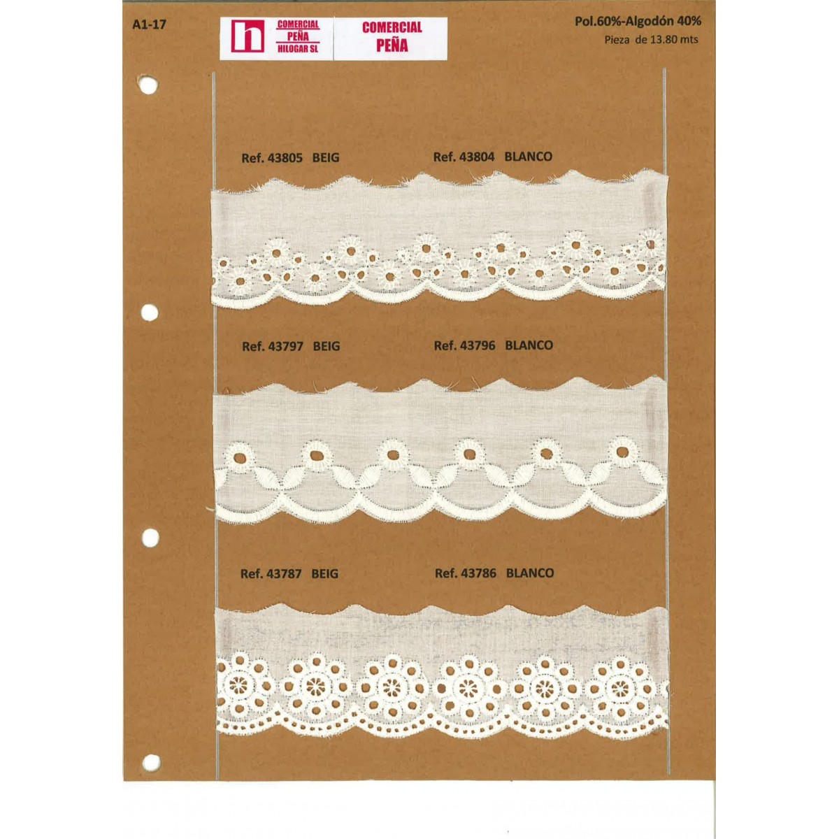 43796 TIRA BATISTA GABY POLIESTER 60%-ALGODON 40% BLANCO Venta en piezas de 13.80 M
