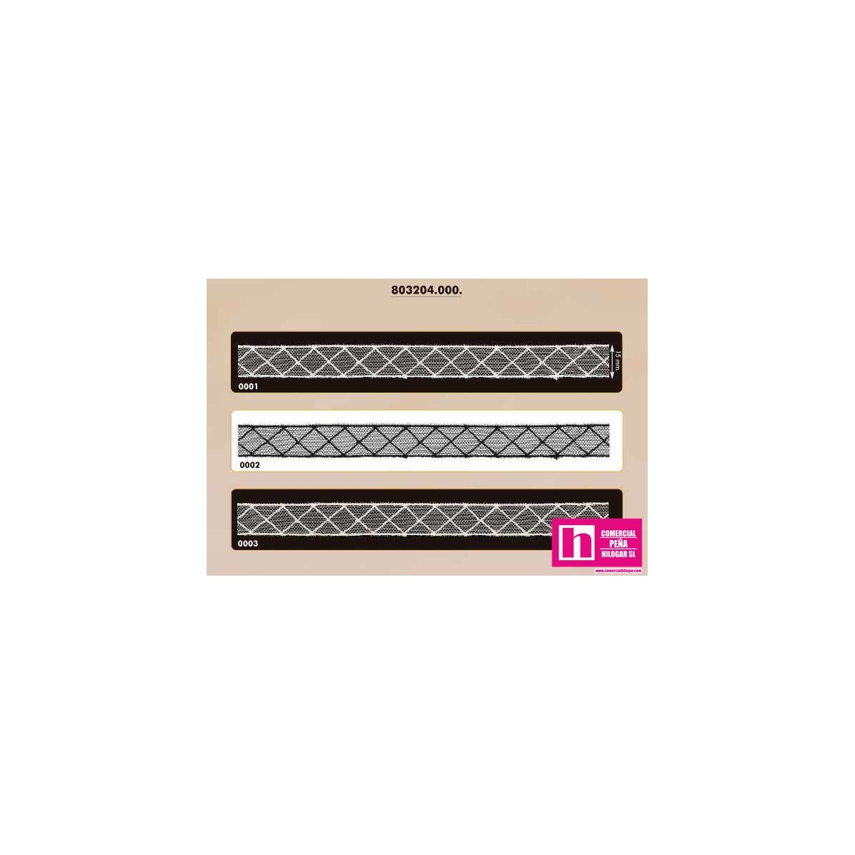 803204-0002 XENO ENTREDOS TUL BORDADO 15 MM. ALGODON 50%-NYLON 50% NEGRO Venta en piezas de 13.00 M