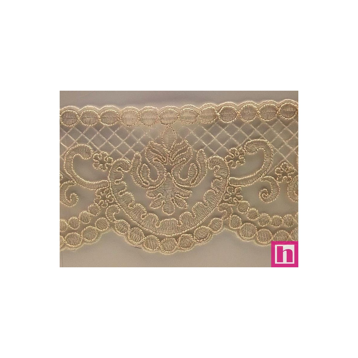 66393 PUNTILLA TUL BORDADO MESUT 100 MM. POLIESTER 100% MARFIL/ORO LUREX Venta en piezas de 9.00 M