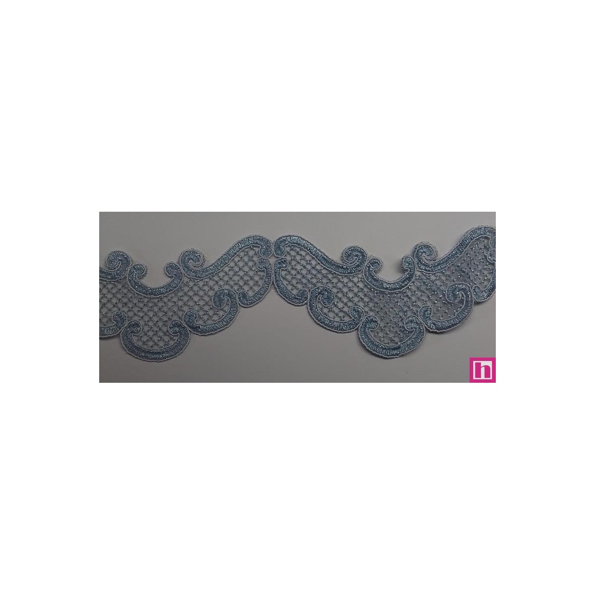 66418 PUNTILLA TUL BORDADO KAAN 50 MM. POLIESTER 100% BLANCO/AZUL LUREX Venta en piezas de 9.00 M