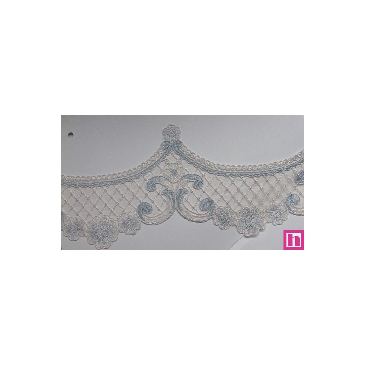 66411 PUNTILLA TUL BORDADO VOLKAN 90 MM. POLIESTER 100% MARFIL/CELESTE Venta en piezas de 9.00 M