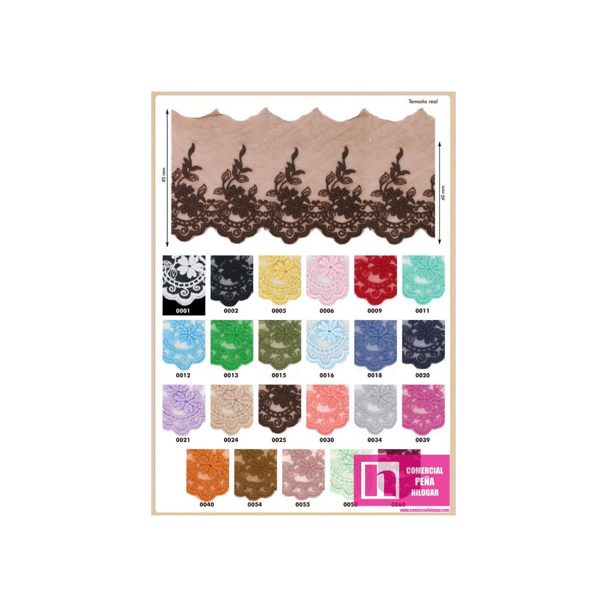 725307-0018 MUSCARIS PUNTILLA TUL BORDADO 65 MM NYLON 50%-ALGODON 50% AZUL Venta en piezas de 18.20 M