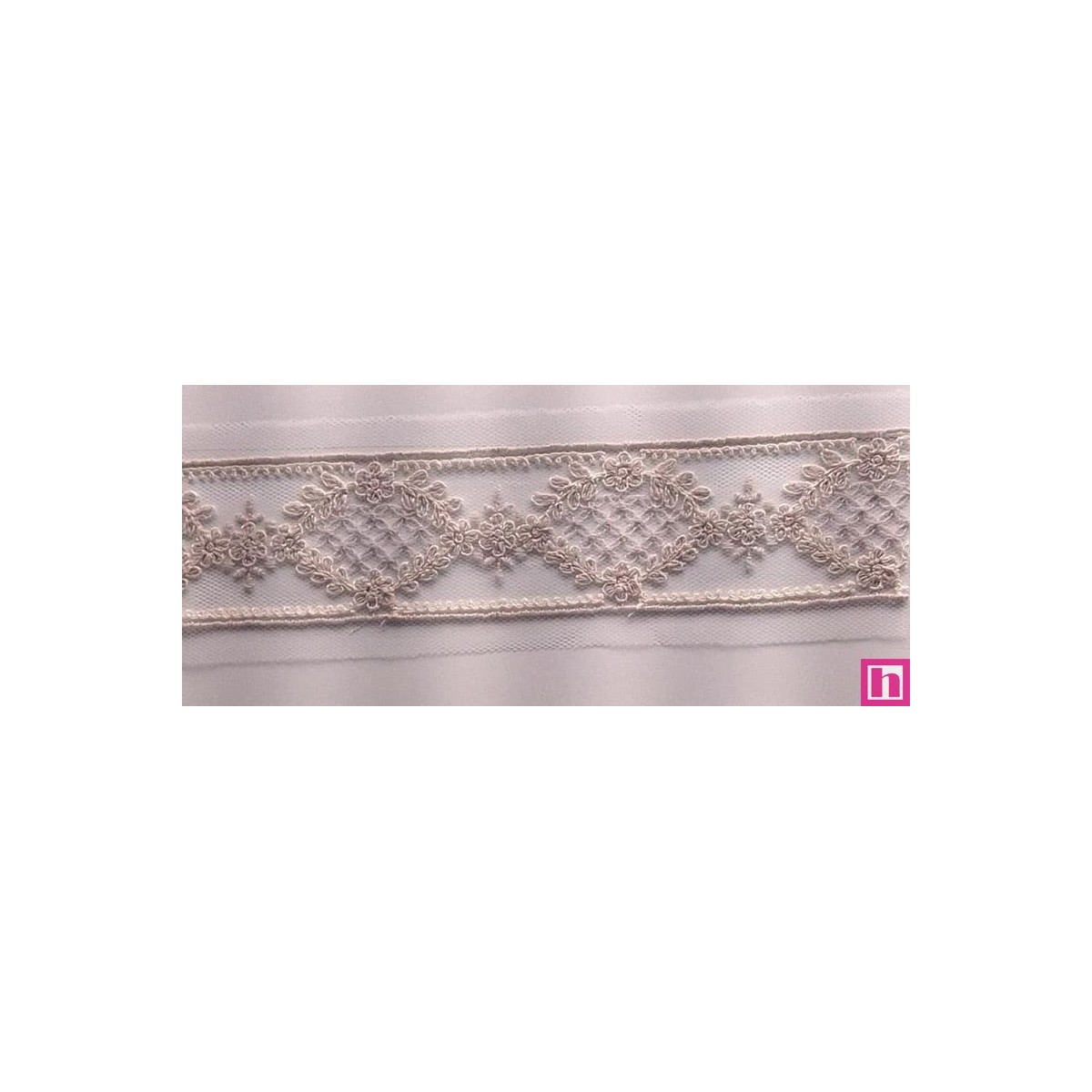 66452 ENTREDOS BORDADO TUL SELENA 37 MM. POLIESTER 100% MARFIL/NUDE Venta en piezas de 13.80 M