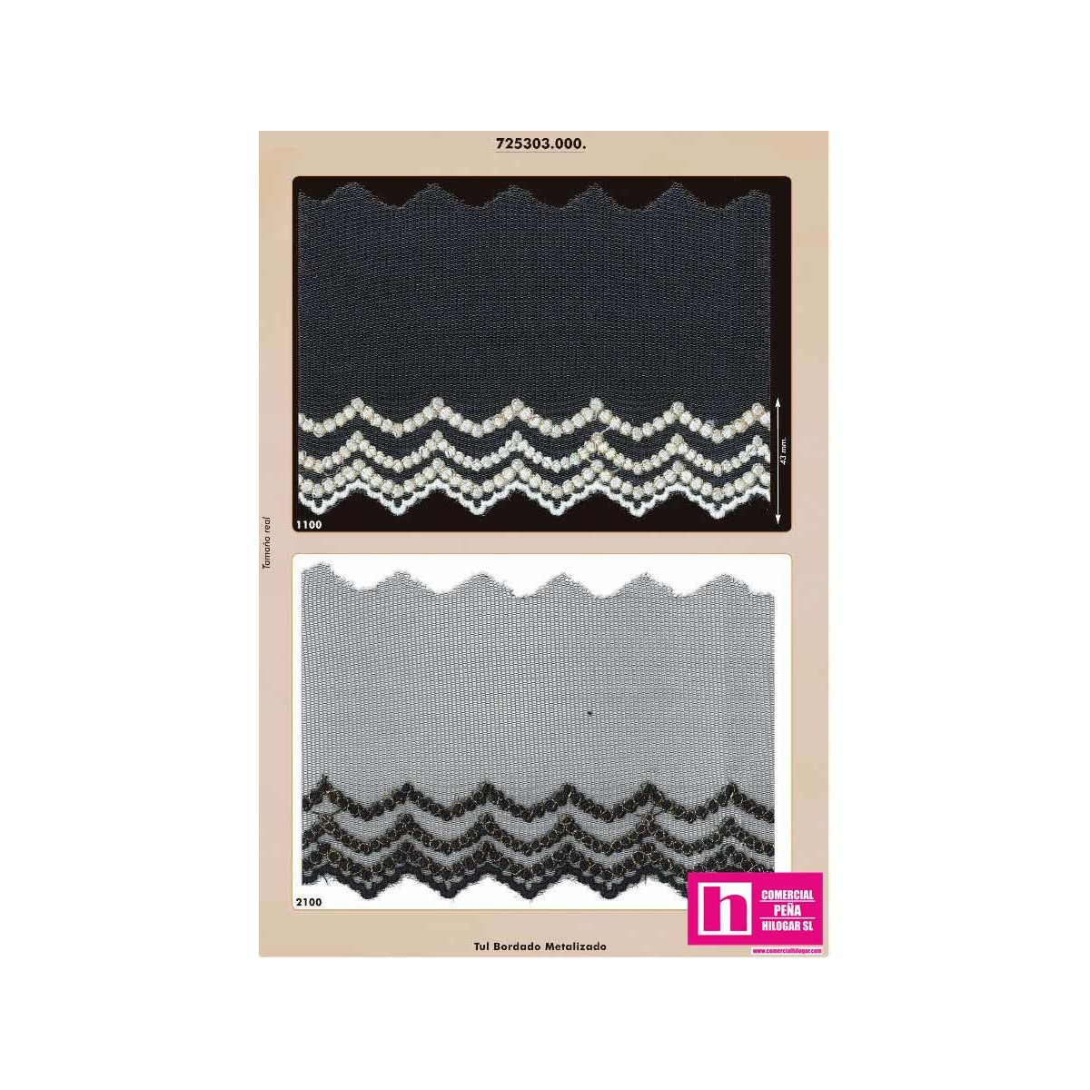 725303-2100 YURI TIRA TUL BORDADO METALIZADO 43 MM. POLIESTER 100% NEGRO/ORO Venta en piezas de 18.00 M