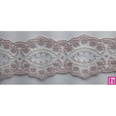 66466 GALON BORDADO TUL JULIETA 55 MM. POLIESTER 100% MARFIL/NUDE Venta en piezas de 13.80 M