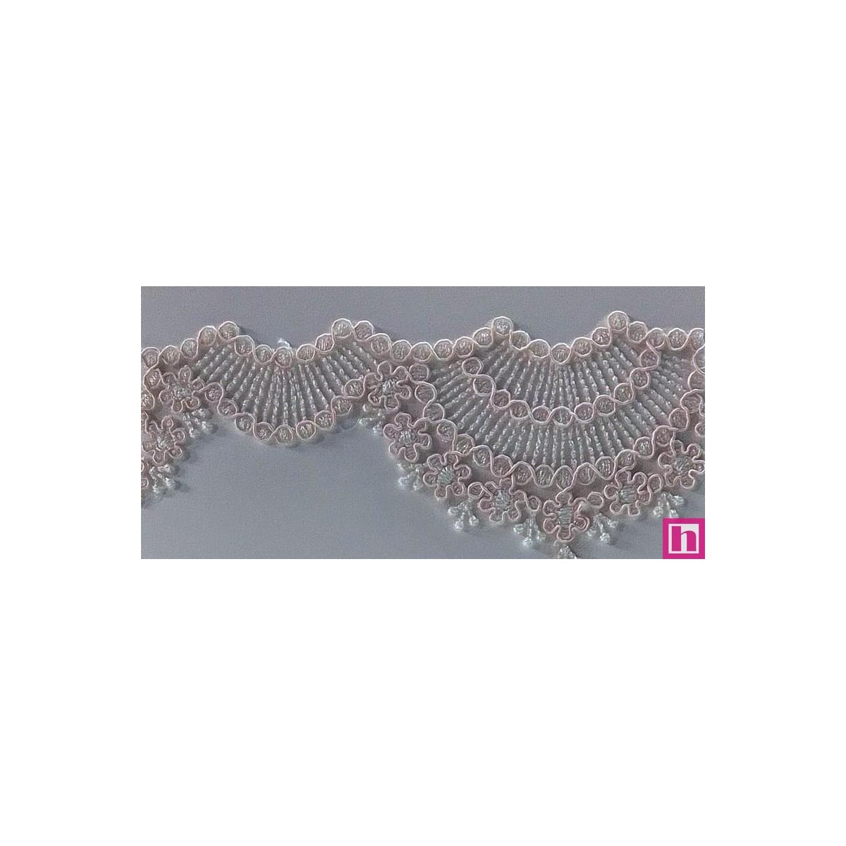 66396 PUNTILLA TUL BORDADO BURAK 65 MM. POLIESTER 100% MARFIL/ROSA Venta en piezas de 9.00 M