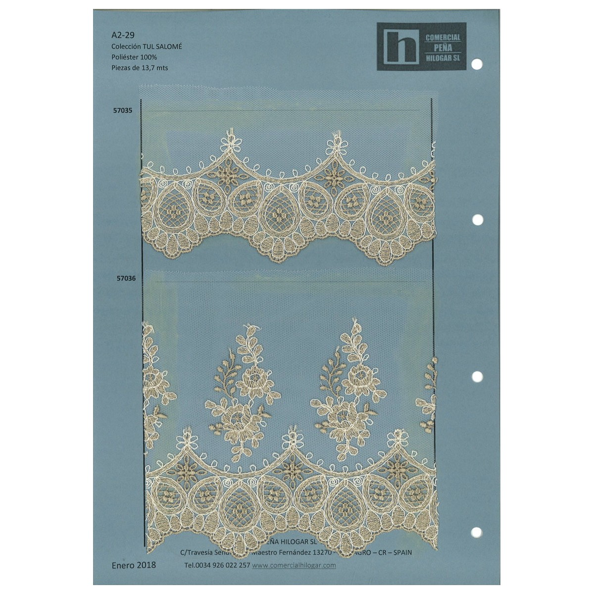 57036 SALOME PUNTILLA BORDADA TUL 140 MM. POLIESTER 100% MARFIL/CAMEL Venta en piezas de 13.00 M