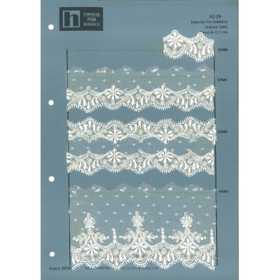 57029 GABRIELA PUNTILLA BORDADA TUL 40 MM. POLIESTER 100% MARFIL Venta en piezas de 13.00 M