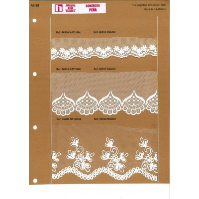 46916 TIRA ENCAJE TUL BORDADO ALGODON 50%-NYLON 50% NATURAL Venta en piezas de 13.00 M