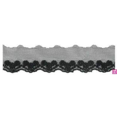 46915 TIRA ENCAJE TUL BORDADO ALGODON 50%-NYLON 50% NEGRO Venta en piezas de 13.00 M