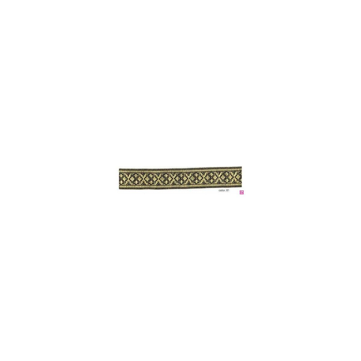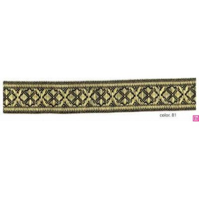 9634-35-81 CINTA JACQUARD 35 MM TUYEN ACRILICO 40%-VISCOSA 40%-POL.20% NEGRO/ORO Venta en piezas de 12.50 M